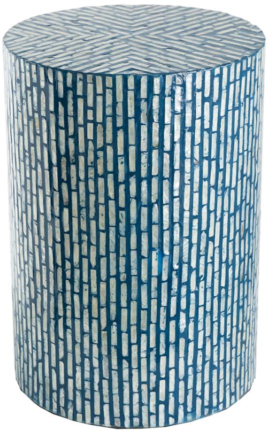 A Capiz inlay gives this pedestal stool an intriguing, classy look. The cylindrical frame features a beautiful blue finish and intricate detailing throughout the linear pattern. From the bedroom to the family room, this is a perfectly functional accent that everyone will appreciate.Read More
