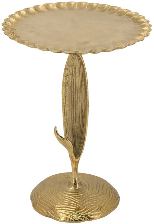 Reinventing the classic side table, this piece showcases the whimsical allure of nature, with an intricately crafted leaf silhouette standing between the rounded top and pedestal base. Finished in warm metallic gold, it will capture the eye from anywhere in your home.Read More