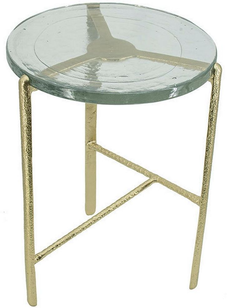 Show off your favorite mementos with the help of this low profile and simply designed end table. Aluminum and glass come together to create this round end table, which comes adorned in a gold finish. It will look right at home next to the couch in the living room.Read More