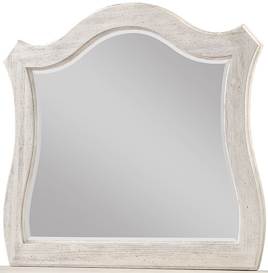 Beveled glass dresser mirror featuring a sandblasted off white paint finish.Read More