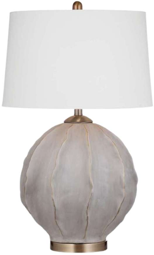 The Annapurna Table Lamp brings contemporary flair to any room in the home. The base is crafted with a gray concrete finished resin, with vertical ridges highlighted with gold brushing. The tapered drum shaped lamp shade comes in a white linen.Read More