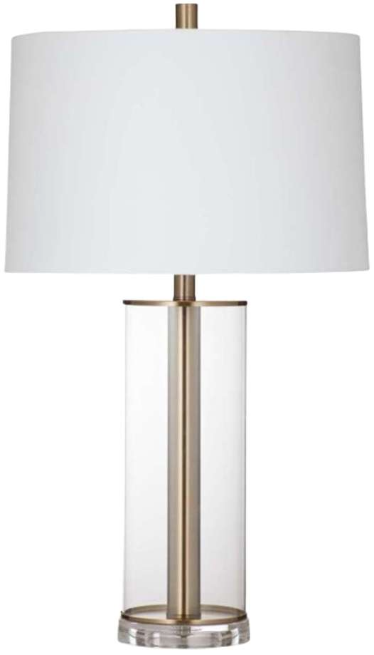 The Ares Table Lamp is crafted of clear glass with brass accents and a white linen drum shade. The hand crafted details produced by a skilled artist lends itself to a unique technique and will vary slightly.Read More