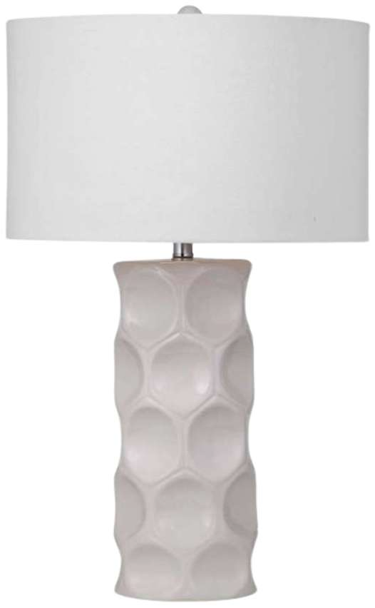 The Cassidy table lamp features ceramic cavities and a cream finish. This lamp is a classic addition to any space in need of subtle yet charming adornment. With its beautiful design, this piece is sure to make a statement in your home.Read More