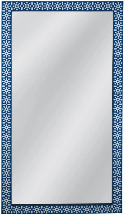 The Kamal Floor Mirror features a blue and ivory bone inlay design. This mirror will create a focal point in your space while also making it look larger and brighter, making it perfect for both practical use and stylish display.Read More