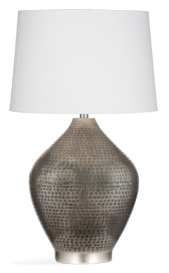 The Lyndler Table Lamp has an antique nickel finish with a tapered white cotton shade. The hand crafted details produced by a skilled artist lends itself to a unique technique and will vary slightly.Read More