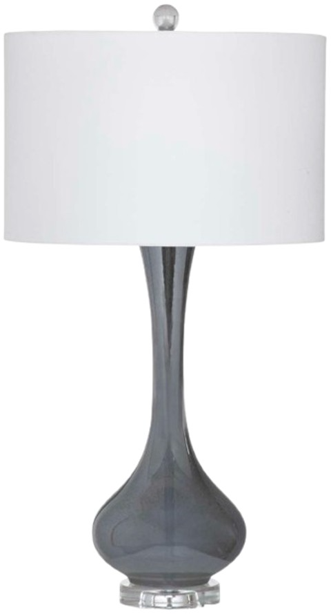 The Trey table lamp is crafted of art glass with a crystal base and a white drum shade. The hand-crafted details produced by a skilled artist lend themselves to a unique technique and will vary slightly.Read More