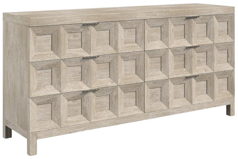 The Prado dresser finds its inspiration in the coffered ceilings of the Prado museum. Six pull-to-open drawers showcase a dimensional geometric design in cast resin overlays. Subtle grain patterns are highlighted with a tawny finish.Read More