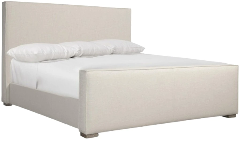 The Tribeca panel bed crafts a modern organic look with an upholstered headboard and footboard that feature unique double welt flanges. The side rails are also upholstered, softening the sleek straight lines of the design. Four wood feet are finished in aurum.Read More