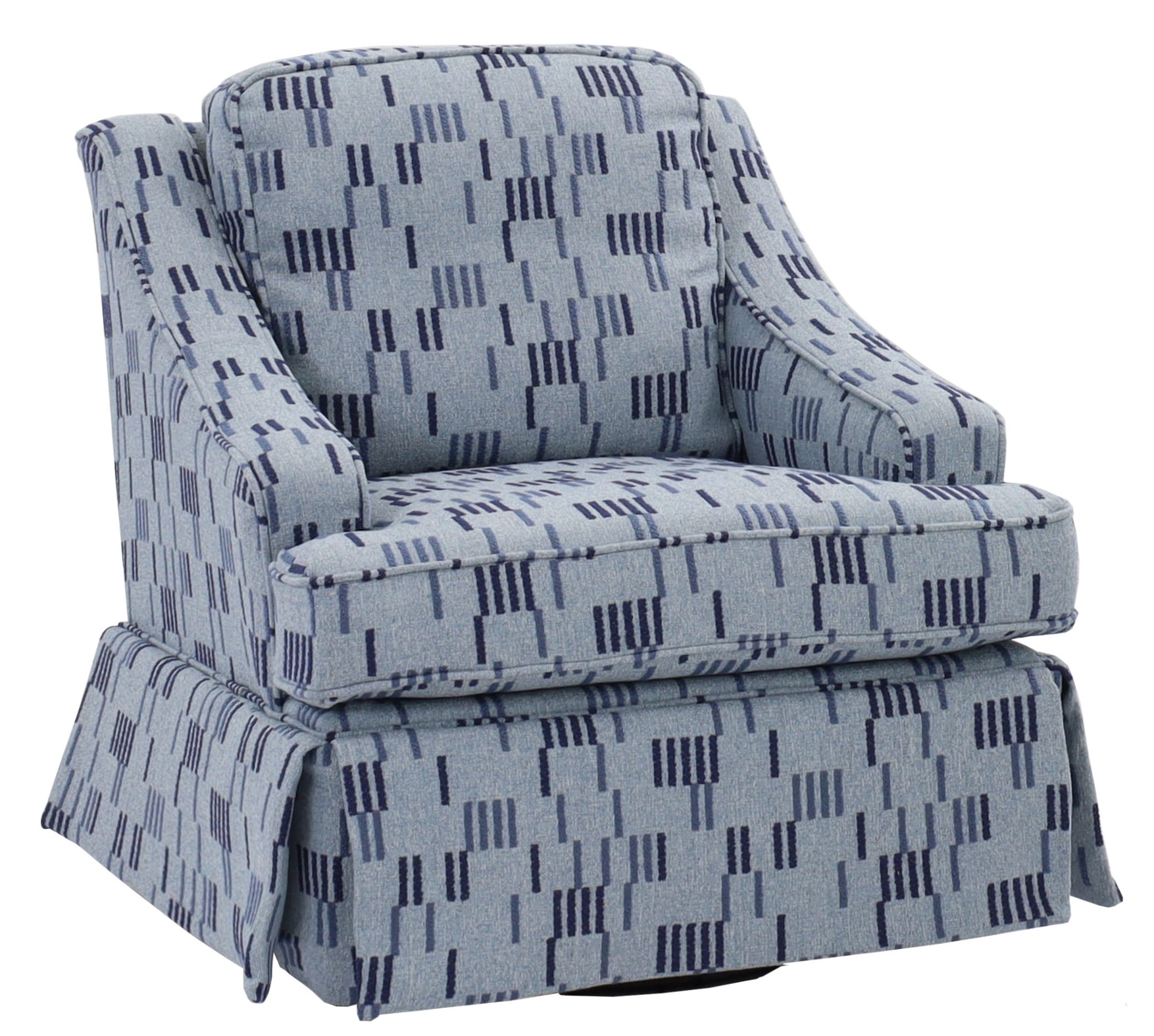 The versatile Ayla chair is on the move. The square body is cut with a sweeping armrest that reaches all the way to the top of the back. Truely customize this transitional chair to make it one of your own. It comes in over 700 fabric choices, and you can have it as a stationary club chair or a 360-degree swivel glider. You can decide whether you want it to stand out from the crowd or support with existing décor. Matching ottoman available.