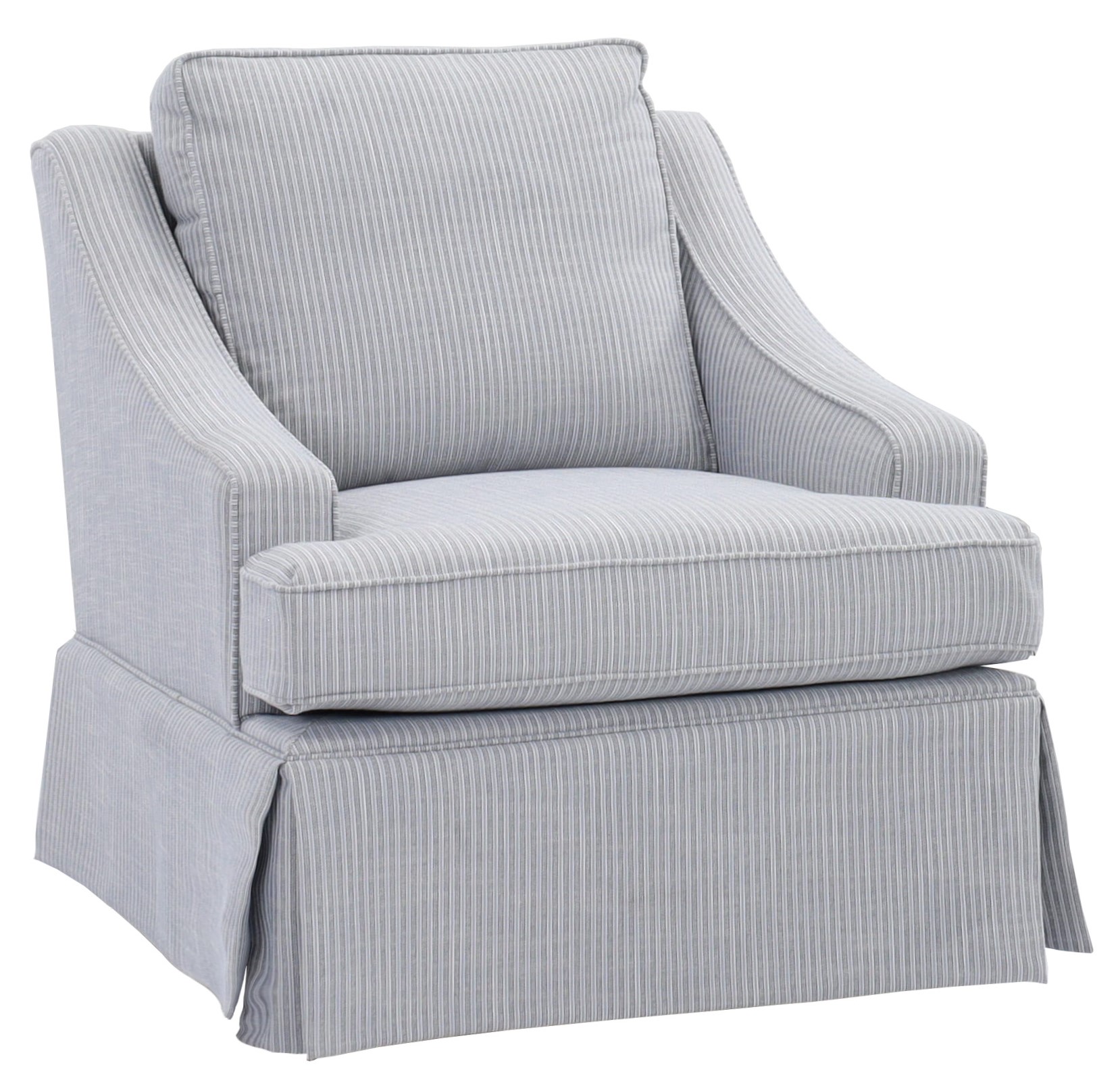 The versatile Ayla chair is on the move. The square body is cut with a sweeping armrest that reaches all the way to the top of the back. Truely customize this transitional chair to make it one of your own. It comes in over 700 fabric choices, and you can have it as a stationary club chair or a 360-degree swivel glider. You can decide whether you want it to stand out from the crowd or support with existing décor. Matching ottoman available.