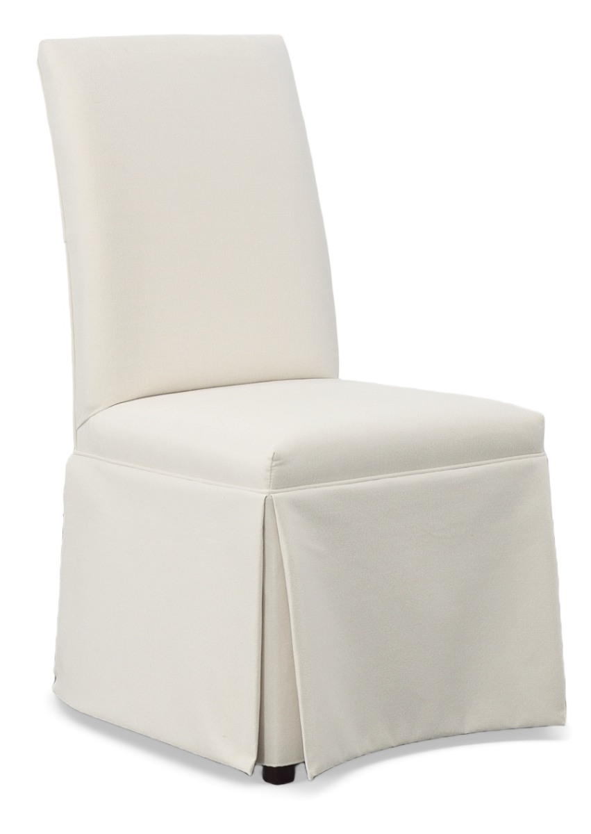 You will feel prim and proper with this upholstered dining chair. Whether you choose to put it at the head of your formal dining room table or you decide to pair it with another alongside a stylish coffee table for a posh sitting area, this upholstered Parsons chair will look stunning. With top-to-bottom fabric creating a streamlined look, the Hazel is the perfect blend of classic sophistication and contemporary style. The arched back, cording accent and kick pleat skirt all come together to create a stunning look that is enhanced by your choice of any of our fabric upholstery options.