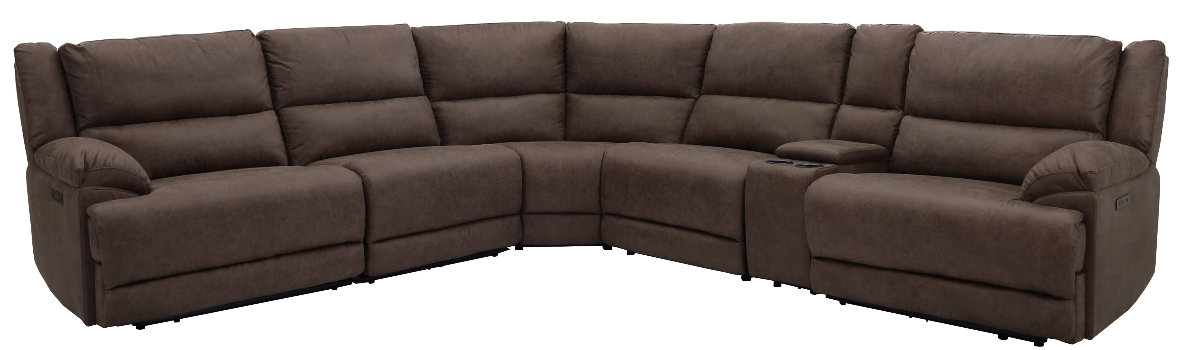 The CHEERS Texas Slate 6-Piece Power Reclining Sectional combines timeless style and premium comfort. Upholstered in rich brown fabric, it features power reclining, adjustable power headrests, a center console with storage and cupholders, and built-in USB ports. Perfect for any living space, it offers luxury, convenience, and functionality.Read More