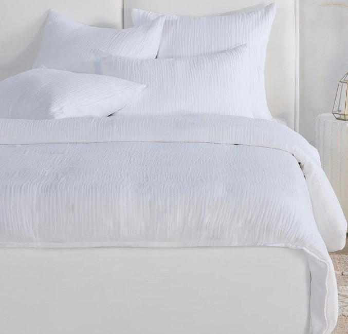 Airy and inviting, this duvet collection features three soft layers of blended cotton and linen fabric. The pre-shrunk and lightly washed fabric offers a light, breathable feel for year-round comfort. The soft colors showcases the lush texture of this charming set and the corner ties allow for a secure insert without any shifting.Read More