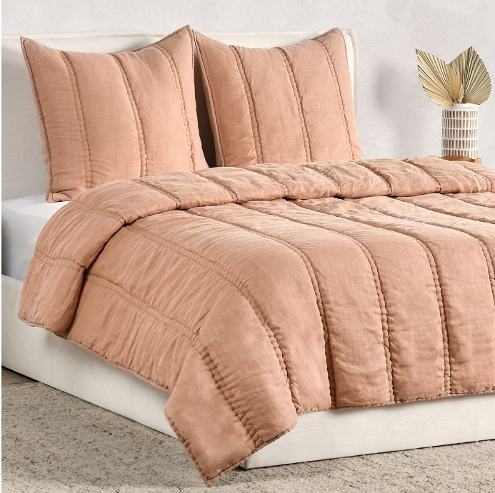 The Rowen Clay King Quilt Set offers a perfect blend of comfort and style for your bedroom. Featuring a soft clay-colored quilt with intricate stitching details, this collection exudes warmth and sophistication. The set includes matching pillow shams that complement the quilt's design, creating a cohesive look for your bed.Read More