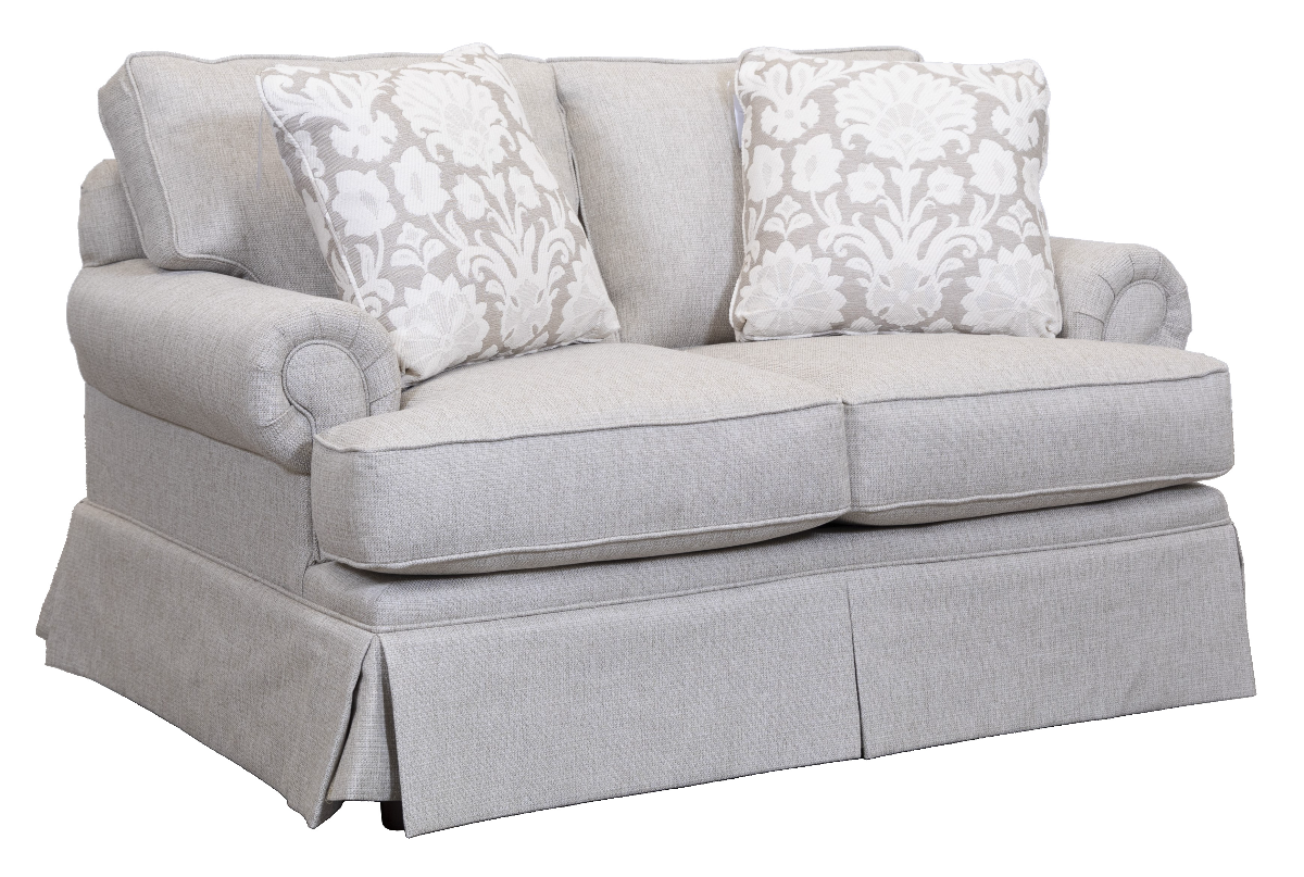 Craftmaster skirted loveseat with tufted rolled arms. This loveseat is covered in a performance fabric and is part of a customizable program!Read More