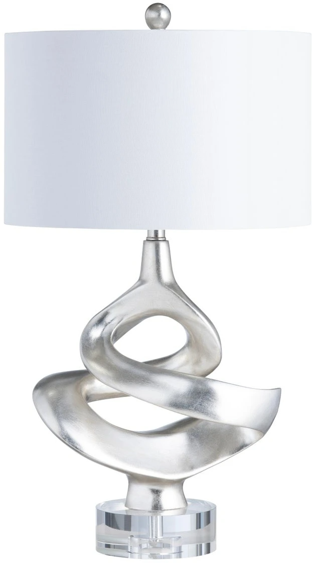 An abstract modern base brings a sculptural element to your space with the Crestview Collection Curran Table Lamp. Crafted from resin with a gilded silver finish it is mounted on a substantial crystal base. The wide linen shade complements the intricate structure of the lamp and provides a functional accent piece for a console or side table.Read More