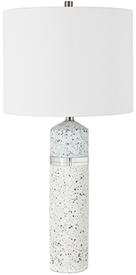 The Crestview Collection Hollis White Concrete Table Lamp features a concrete base and a white drum shade.Read More