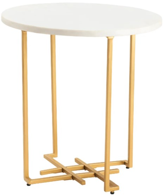 The Crestview Collection Pembroke Round End Table has a simple yet elegant design. A gold metal base is topped with a clean, white table top. Four legs intersect along the floor to create a square design. This transitional end table will look stunning next to your favorite chair.Read More