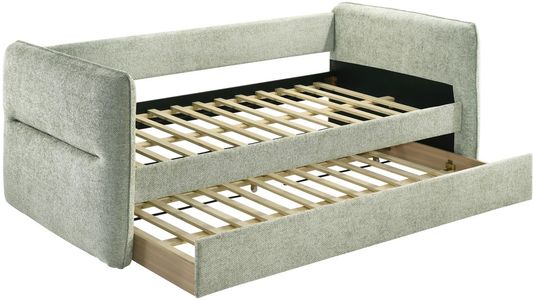 The daybed features an innovative pull-out trundle that effortlessly transitions the piece from a cozy lounge to a comfortable sleeping solution for guests.