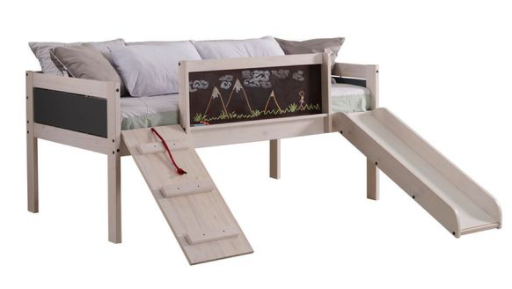 Our Donco kids Twin junior low loft with toy boxes make bedtime so much fun! With add-ons like a rope ladder, slide, and chalkboard, your child will enjoy going to bed. Toy boxes are available for add-on.Read More