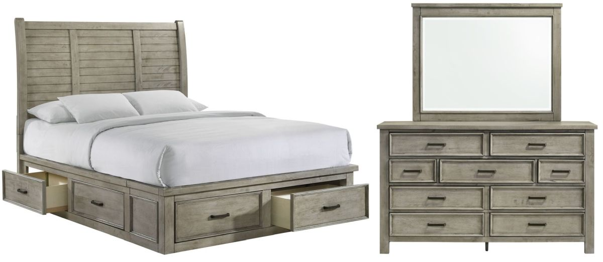 Elevate your personal getaway and add the perfect new addition to your space with this transitional storage bed. A gorgeous paneled headboard gives your space a rustic aesthetic, while the drift grey finish adds a modern appeal to your bedroom.