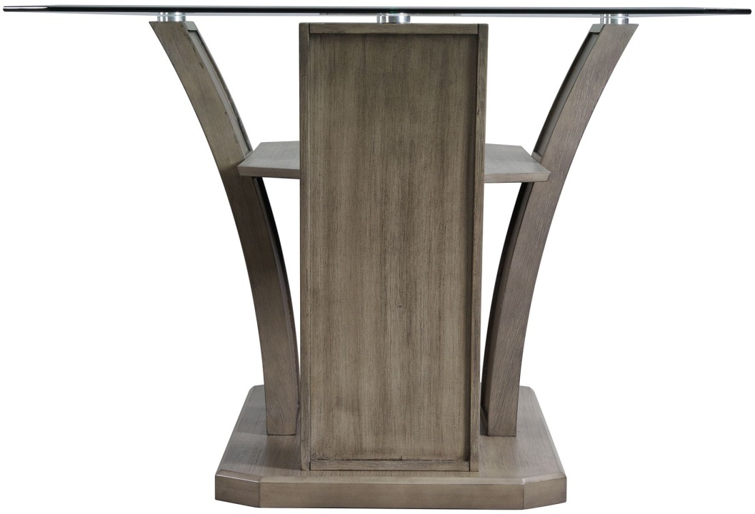 The Elements International Dapper Grey/Glass Rectangle Dining Table features a beautiful glass table top and an intricate wooden base.Read More