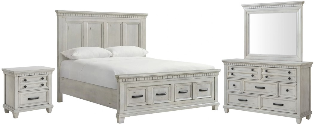 The McCoy Bedroom Set blends rustic charm with classic elegance. Featuring an antique white finish, the set includes a king bed, dresser, mirror and nightstand. Sturdy wood construction, intricate molding, and metal hardware create a timeless look perfect for any farmhouse or traditional bedroom.Read More