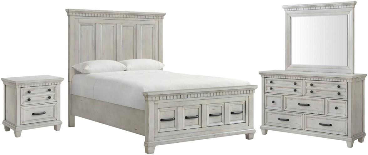 The McCoy Bedroom Set blends rustic charm with classic elegance. Featuring an antique white finish, the set includes a queen bed, dresser, mirror and nightstand. Sturdy wood construction, intricate molding, and metal hardware create a timeless look perfect for any farmhouse or traditional bedroom.Read More