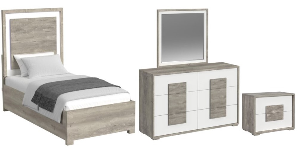 The San Matteo bedroom set delivers a modern and stylish upgrade to any twin-sized bedroom. Featuring a sleek dual-tone finish ash grey and white accents or contrasting white panels. LED lighting built into the headboard adds ambiance and usefulness — ideal for reading, nighttime routines, or creating mood lighting.Read More
