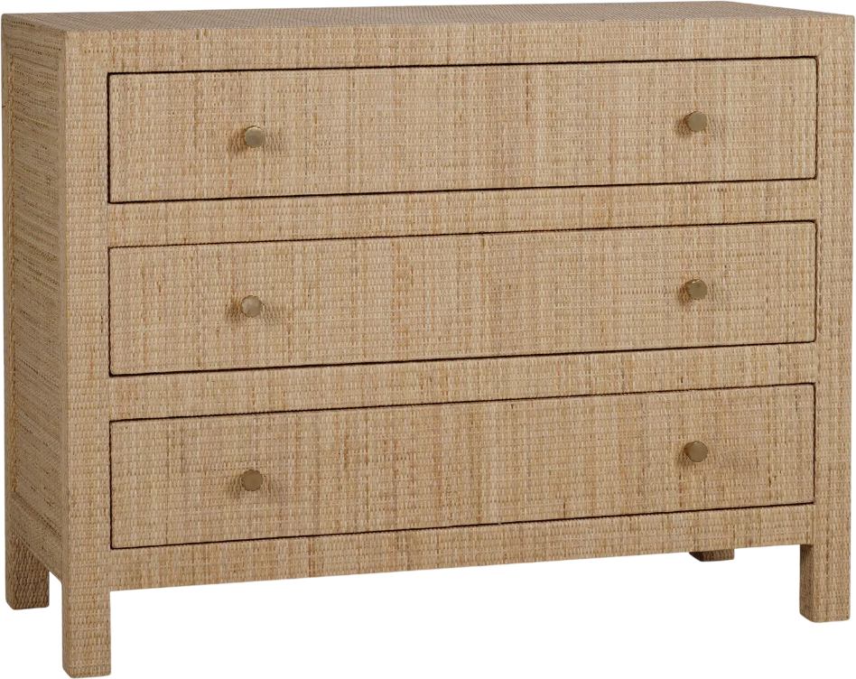 This Rattan Natural Dresser features three drawers, rattan, and is in the Kate collection.Read More