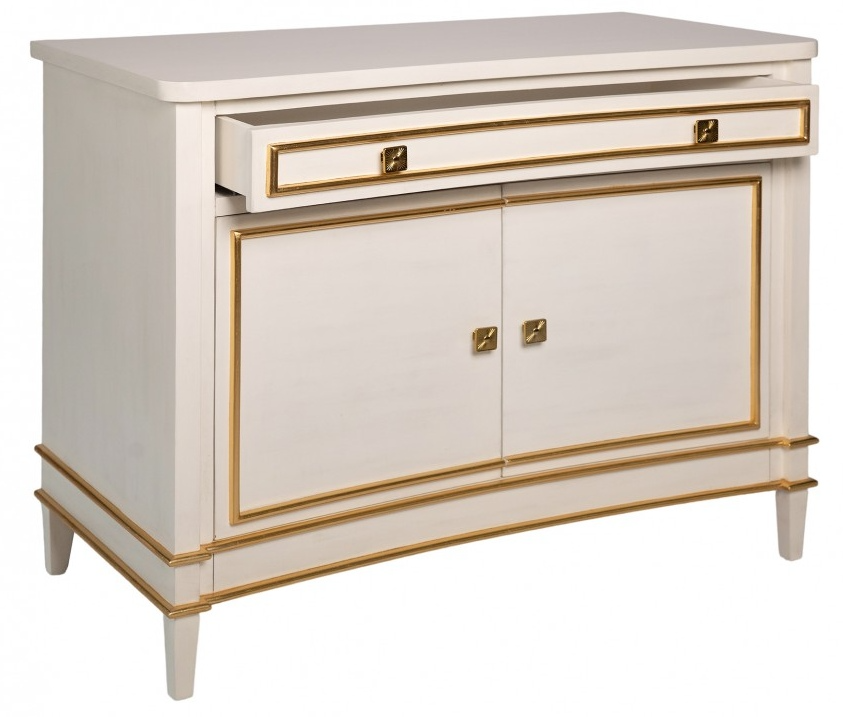 Crafted with precision, the sideboard features a sleek white finish that effortlessly complements any interior decor. The gold accents add a touch of glamor, making it a focal point in any room.