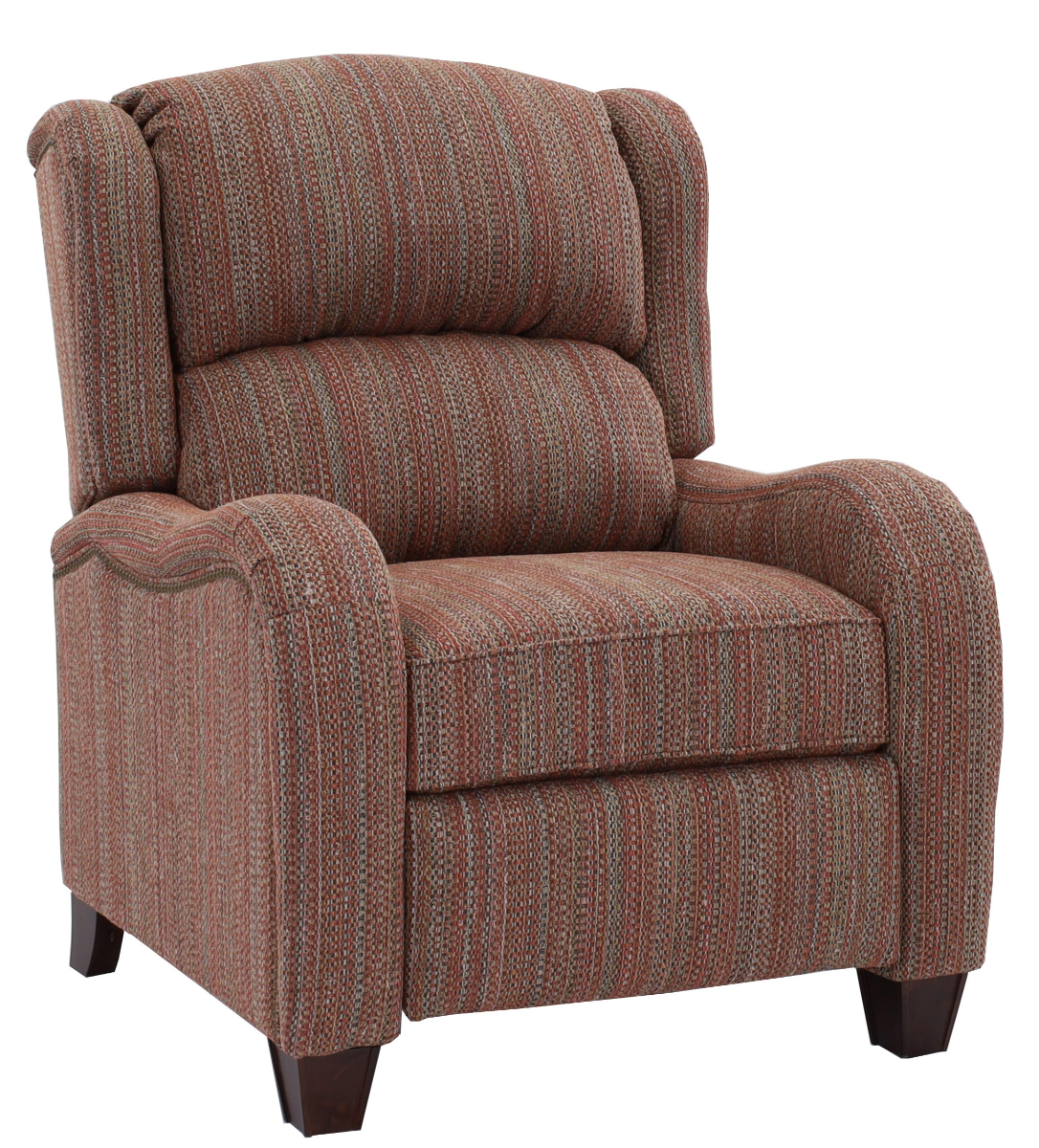 Create an atmosphere of casual ambiance with the Carolynne reclining chair. Its slightly rugged charm works well with any décor. This shapely silhouette sports a brass nail trim, pub back, and wooden block leg. Make sure you check out Leonard if you’re interested in seeing it in all leather.