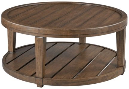The England Furniture Oliver brown round cocktail table is crafted of sepia solids and white oak veneers, offering strength and style. Finished in a rich brown tone, it features a smooth round top and a sturdy base. Designed with timeless simplicity, it brings balance and elegance to any living room.Read More
