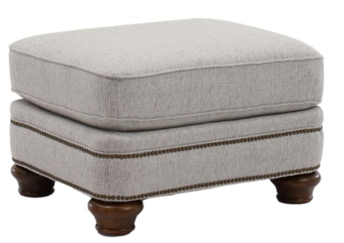 Reed Ottoman features nailhead trim and turned bun legs.Read More