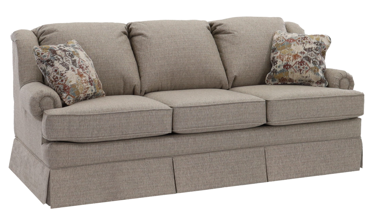 The upscale simplicity of the Rochelle collection is unsurpassed. Its petite scale, traditional skirt, and contrasting throw pillows make it just about perfect. This collection features a sofa, gliding loveseat, chair, ottoman, and accent recliner.Read More
