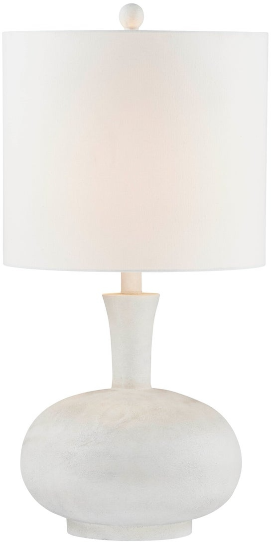 Forty West Ellis Table Lamp features a gourd shape base in a stone-like grey finish paired with a hardback drum shade.Read More
