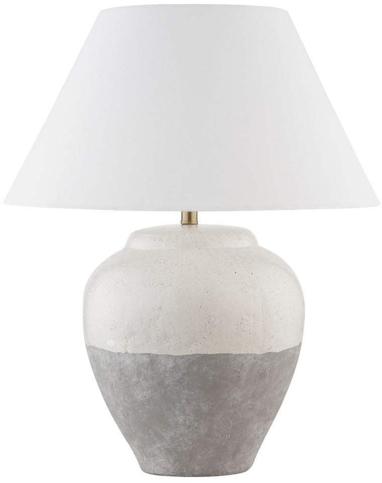 Forty West Cameron White/Gray Table Lamp features drum shape shade, gray/white color, and gray/white base.Read More