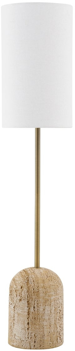 Caroline Brown Buffet Lamp features drum shape shade, white color, and white base.Read More