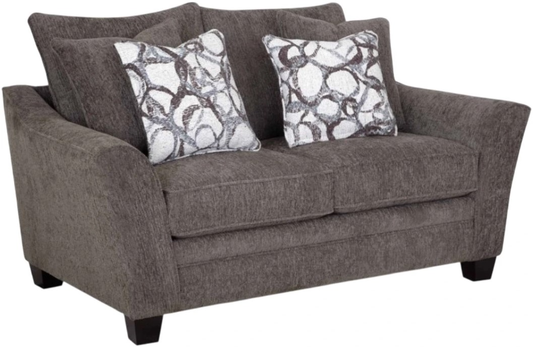 Experience a touch of “flare” with the meticulously crafted 910 Tiffani Collection. This thoughtfully designed collection includes a sofa, loveseat, chair and half and matching ottoman. All pieces are upholstered in a soft, durable gray fabric that is contrasted with coordinating accent pillows.Read More