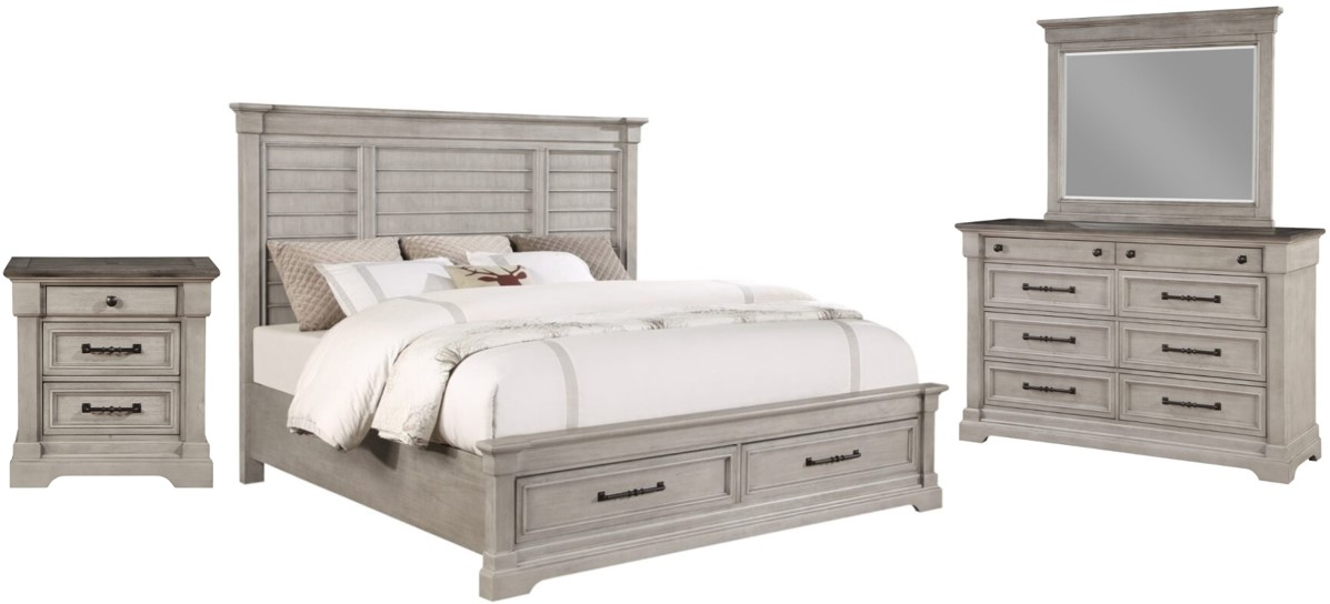 Transform your bedroom with the Woodbridge bedroom set. Featuring a spacious king bed with built-in storage, a dresser with coordinating mirror, and a stylish nightstand, this set combines timeless design with practical function. Crafted for durability and comfort, it’s the perfect blend of elegance and everyday convenience.Read More