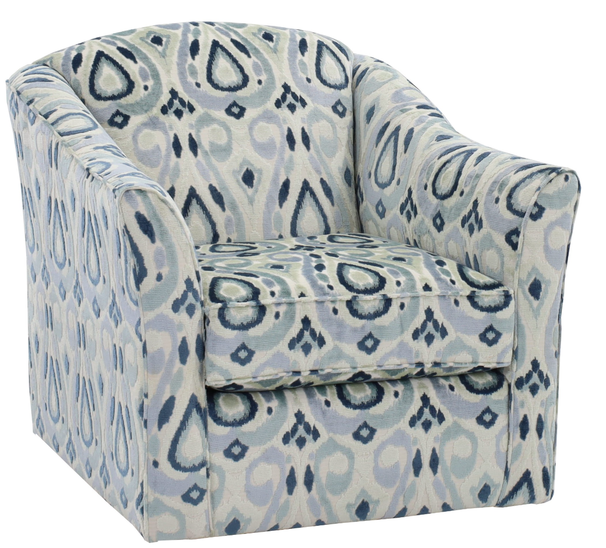 This swivel chair is featured in the Kasuri Ocean fabric. Pair with the matching cocktail ottoman.Read More