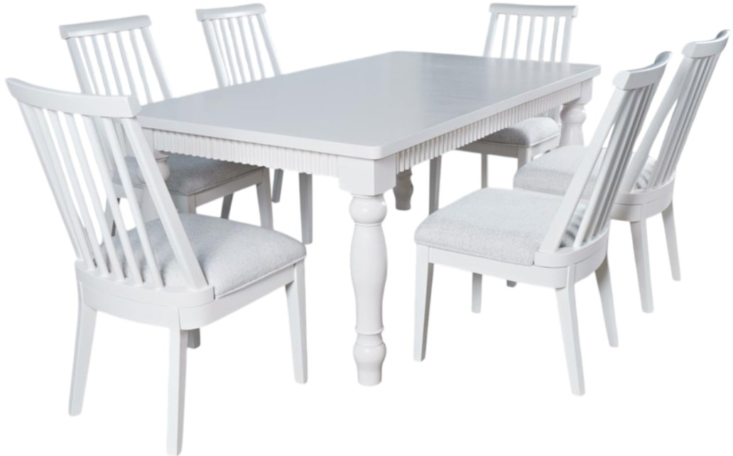 Westport dining set brings classic charm and modern functionality to your dining space. Featuring a spacious rectangular table with a crisp white finish and four matching dowelback chairs, it creates a bright, inviting atmosphere perfect for family meals, casual dining, or entertaining guests in timeless style.Read More
