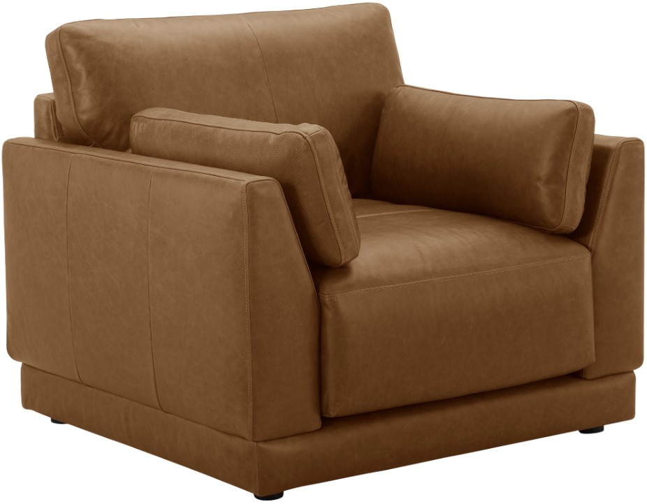 This chair blends modern sophistication with ultimate comfort. Upholstered in luxurious Concord Mink leather, it features deep, plush seating, padded armrests, and supportive cushions. Its sleek design and neutral tone make it a versatile centerpiece, perfect for relaxing or entertaining in any living space.Read More