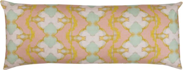 Laura Park Designs Lily Pond Apricot bolster pillow features 90% cotton/10% linen, double-sided print with knife-edge finish and concealed zipper with a 95/5 feather-down insert.Read More