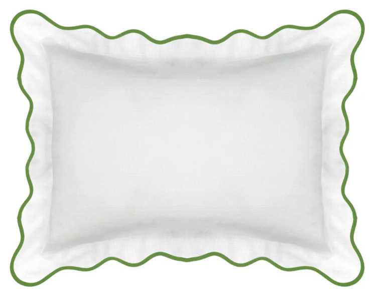The perfect blank canvas. These scalloped euro shams are an elegant addition to any bed, perfect for layering with our vibrant patterns. The soft white fabric features a green piped edge, offering a cohesive, classic look.Read More