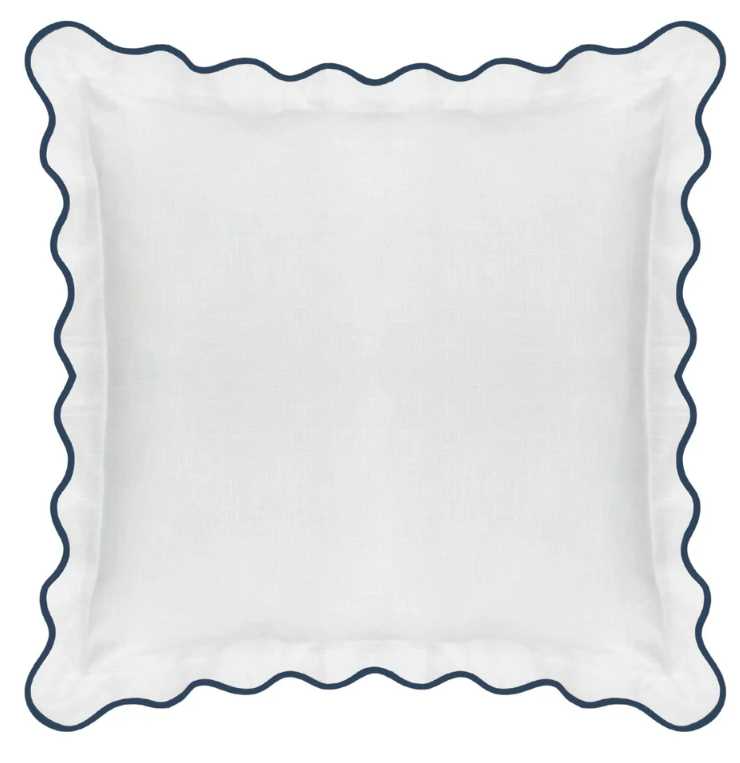 The perfect blank canvas. These scalloped euro shams are an elegant addition to any bed, perfect for layering with our vibrant patterns. The soft white fabric features a blue piped edge, offering a cohesive, classic look.Read More