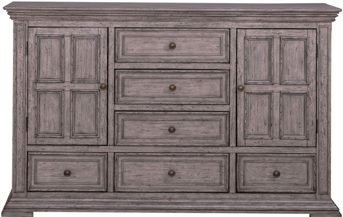 The Big Valley graystone dresser is a bold, traditionally styled piece built for both elegance and utility. It features a rich graystone finish, antique pewter hardware, and premium drawer construction for lasting durability and visual impact.Read More