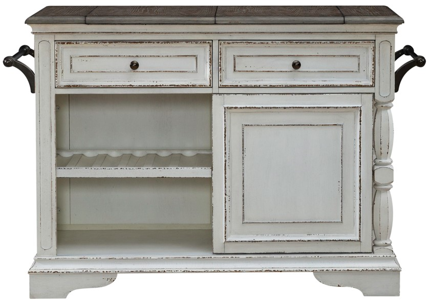The Magnolia Manor bar cart is a stunning blend of elegance and functionality designed to elevate your entertaining space. Crafted with excellence using Rubberwood solids with White Oak and Birch veneers, this piece features an Antique White finish with a Weathered Bark finished topRead More