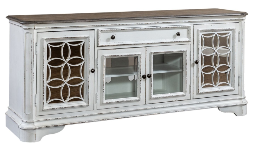 This European traditional styled 74" tv stand is sure to be the focal point of any living room and can accommodate most 80" TVs. Crafted with poplar solids and white oak and birch veneers.Read More