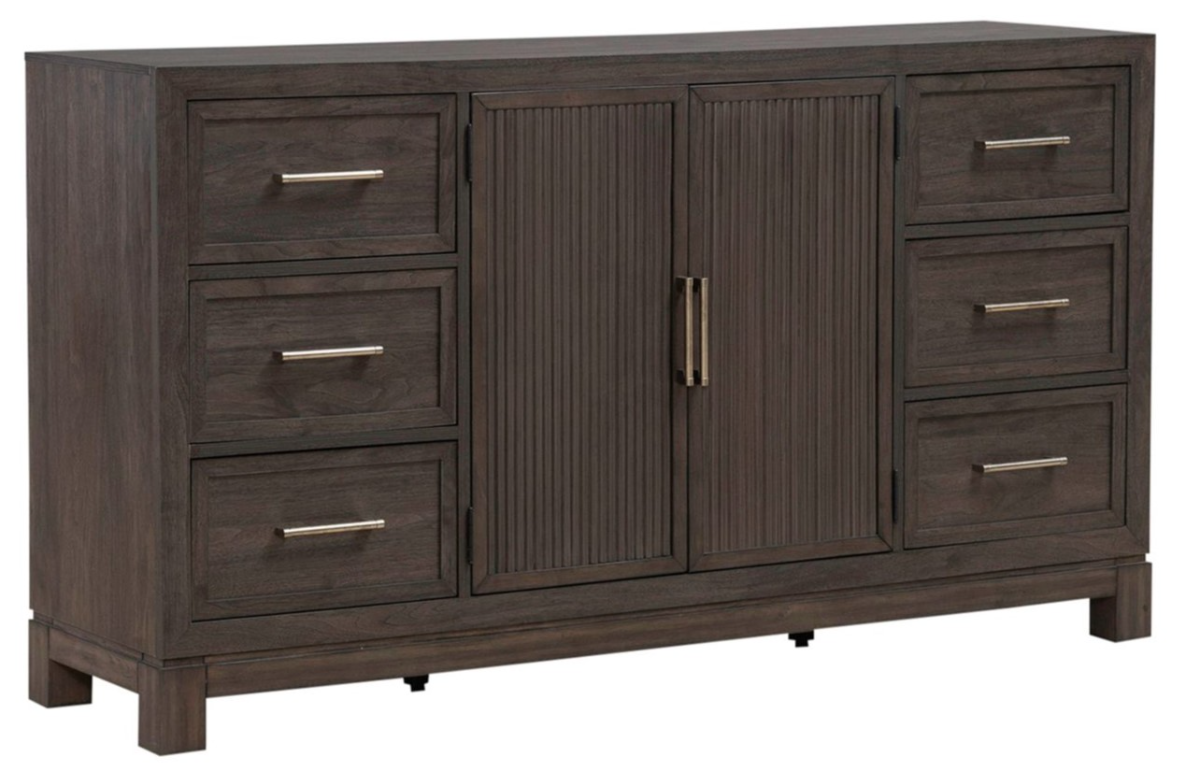 Enhance your bedroom space and storage with this dresser from the Modern Edge collection. Equipped with 6 drawers and 2 cabinets that have metal bar drawer pulls, this dresser will give style and functionality to any room.Read More